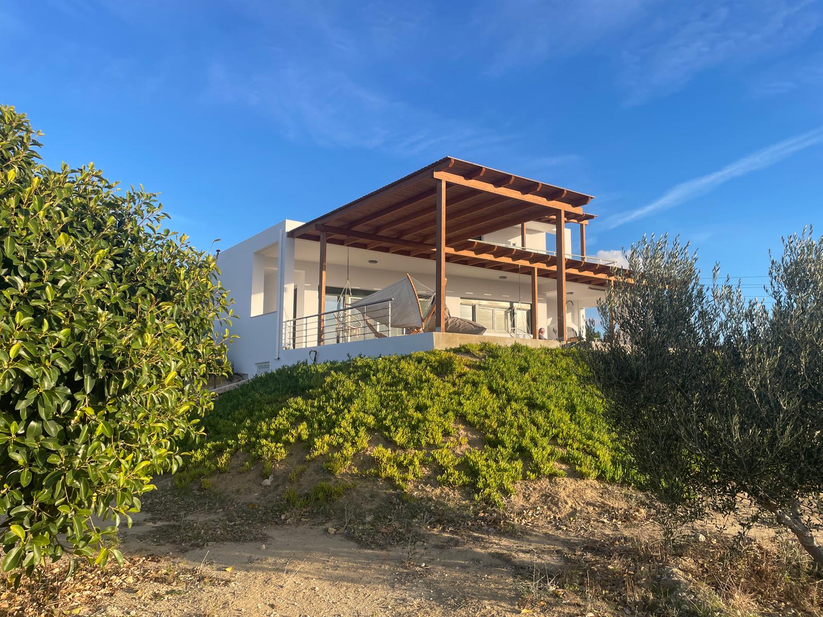 Das architektonisch anspruchsvolle Äußere fügt sich in die Berglandschaft mit Ausrichtung der Terrasse und des Pools zur Südseite und Aussicht auf das Meer.